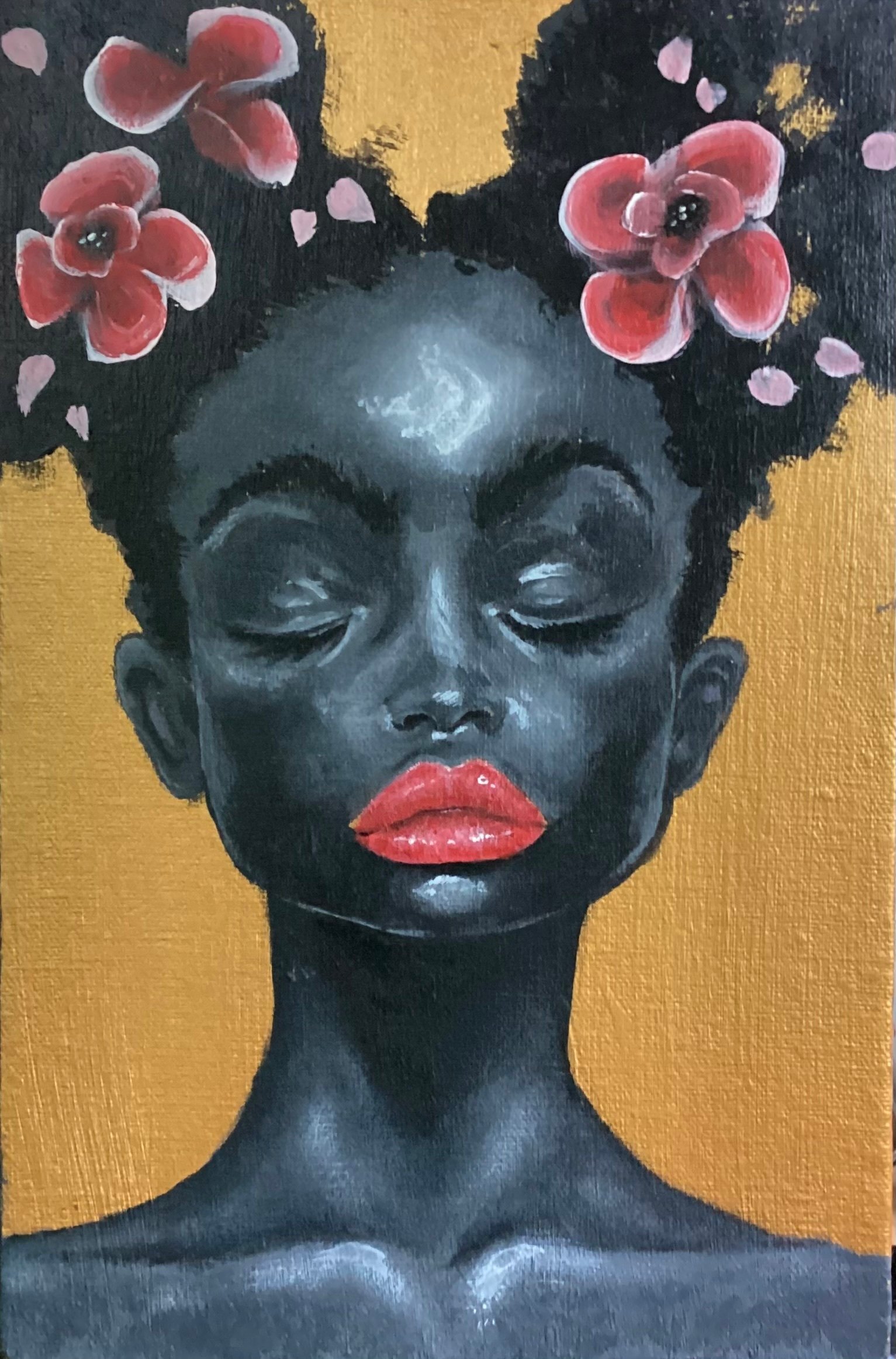 “Reflection” is a soulful exploration of identity, self-discovery, and the quiet strength found through introspection. Rich, layered textures mirror the complexity of lived experiences, while luminous tones evoke moments of clarity, self-love, and ancestral wisdom.